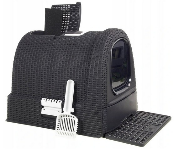 Jednym z kluczowych atutów tej kuwety jest wysuwana szuflada, która znacząco ułatwia czyszczenie. Dzięki niej, sprzątanie staje się szybkie i bezproblemowe, co doceni każdy zapracowany właściciel. W zestawie znajduje się także schowek na akcesoria, w którym zmieścisz łopatkę oraz matę czyszczącą łapki, co pozwoli na zachowanie porządku w każdym kocim kąciku.