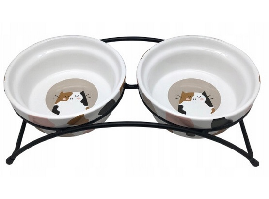 Yarro/Moderna Miska ceramiczna podwójna dla kota na stojaku metalowym [Y2763] kup w sklepe internetowym Zoo-mall.pl już teraz.