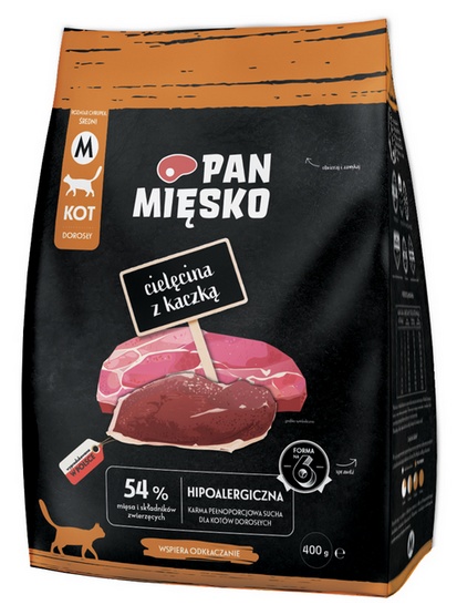 Pan Mięsko Karma sucha dla kota - cielęcina i kaczka chrupki M 400g kup w sklepe internetowym Zoo-mall.pl już teraz.