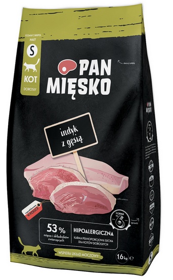 Pan Mięsko Karma sucha dla kota - indyk i gęś chrupki S 1,6kg kup w sklepe internetowym Zoo-mall.pl już teraz.