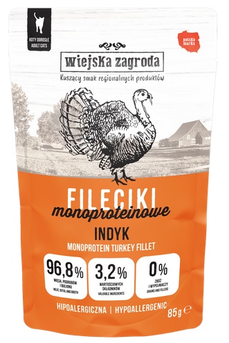 Wiejska Zagroda Kot Fileciki monoproteinowe indyk saszetka 85g kup w sklepe internetowym Zoo-mall.pl już teraz.