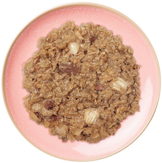 40% filet z indyka, 38,8% bulion, 18% indyk (wątroba, żołądek), 2% żurawina, 1% składniki mineralne, 0,2% olej z łososia.