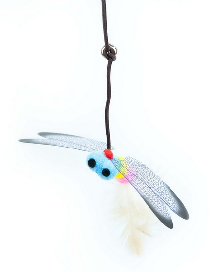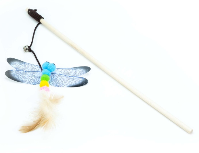Drewniana wędka z zabawką w kształcie ważki to doskonały sposób na wspólne spędzanie czasu z kotem. Ważka zbudowana jest z miękkich kolorowych pomponów, piórek, plastikowych skrzydełek i dzwoneczka, które przy poruszaniu przyciągają uwagę kota.