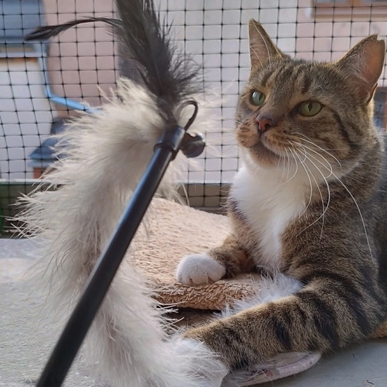 Wygodny kijek sprawi, że i Ty będziesz chciał bawić się z kotem wiele godzin. Zabawka dobrze leży w dłoni.