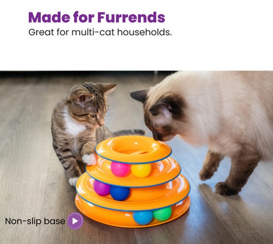 Trzy poziomy ekscytującej zabawy dostarczą mnóstwo radości podczas wspólnych harców z kocim rodzeństwem lub kumplami.