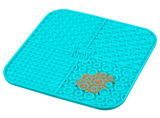 Matę do lizania należy umieścić na płaskiej powierzchni i pokryć mokrą karmą lub ulubionymi smakołykami zwierzęcia, dbając o równomierne rozprowadzenie jedzenia. Jest to idealne rozwiązanie dla tych psów i kotów, które mają tendencje do szybkiego pochłaniania pokarmu. Dzięki temu: