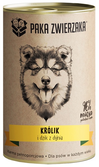 Paka Zwierzaka Królik i dzik z dynią puszka 400g kup w sklepe internetowym Zoo-mall.pl już teraz.