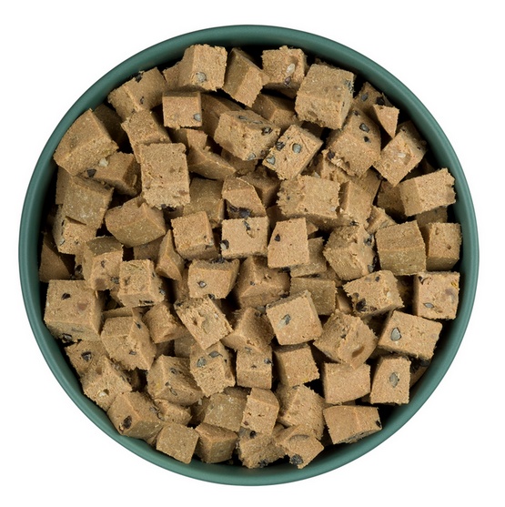 Wołowina i podroby wołowe 90%, jabłka 4,8%, gryka 2%, siemię lniane częściowo odtłuszczone 1,2%, minerały 1%, wapień muszlowy 1%