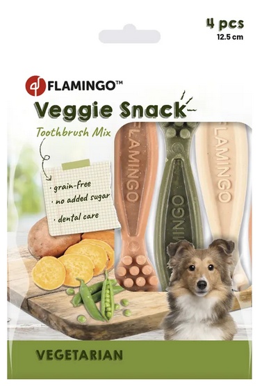 Flamingo Veggie gryzak szczoteczka 12,5cm/4szt kup w sklepe internetowym Zoo-mall.pl już teraz.
