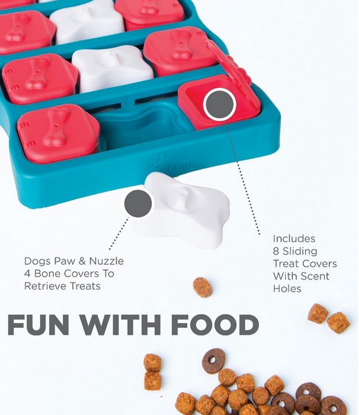 Gra Brick oferuje aż trzy różne metody na zdobycie przysmaków, co sprawia, że każda sesja zabawy jest unikalna i angażująca. Wystarczy napełnić przegródki ulubionymi smakołykami lub suchą karmą, aby zachęcić swojego czworonoga do aktywności. Dzięki temu Twój pies nie tylko rozwija swoje zdolności intelektualne, ale również spędza czas w zdrowy sposób, eliminując nudę i stres. To doskonałe rozwiązanie dla psów, które potrzebują dodatkowej stymulacji umysłowej i fizycznej!