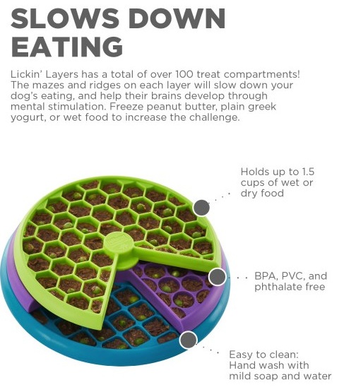 Gra Lickin Layers zachęca do swobodnej zabawy w poszukiwanie smakołyków! Zacznij od napełnienia przegródek przysmakami lub suchą karmą. Potem zachęć pupila do eksploracji zabawki.