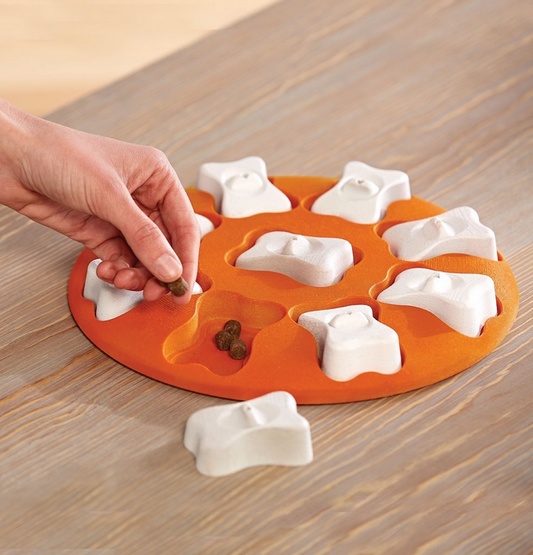 Gra Smart to poziom 1 trudności, co czyni ją idealną dla psów, które dopiero zaczynają swoją przygodę z interaktywnymi zabawkami. Składa się z 9 zdejmowanych kostek, które skrywają w sobie smakołyki. Wystarczy napełnić przegródki ulubionymi przysmakami lub suchą karmą, a następnie zachęcić pupila do odkrywania ich w radosnej zabawie. Tego rodzaju aktywność stymuluje naturalne instynkty poszukiwawcze psów oraz pozwala na wspólne spędzanie czasu z właścicielem.