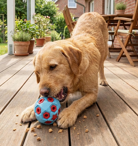 Zabawka rozwija u psa zręczność, inteligencję i koncentrację. Piłka do aportowania na przysmaki wspiera trening i wzmacnia więź między psem a opiekunem.