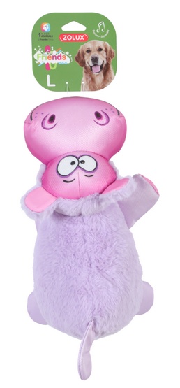 Wbudowana piszczałka sprawia, że pluszak dostarcza zwierzęciu jeszcze więcej radości.