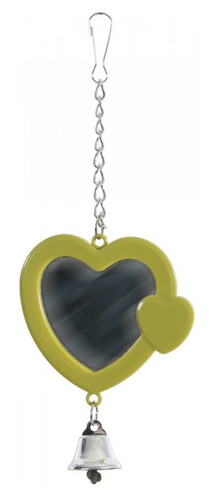 Lusterko w kształcie serca na łańcuszku to idealny dodatek do klatki dla ptaków. Dzięki praktycznemu karabińczykowi, lusterko można przymocować do prętów klatki w dowolnym miejscu. Ozdobny dzwoneczek dodatkowo przyciąga uwagę zwierzęcia. Zabawka ta nie tylko dostarcza zwierzęciu rozrywki, ale także stymuluje je intelektualnie i urozmaica przestrzeń klatki.